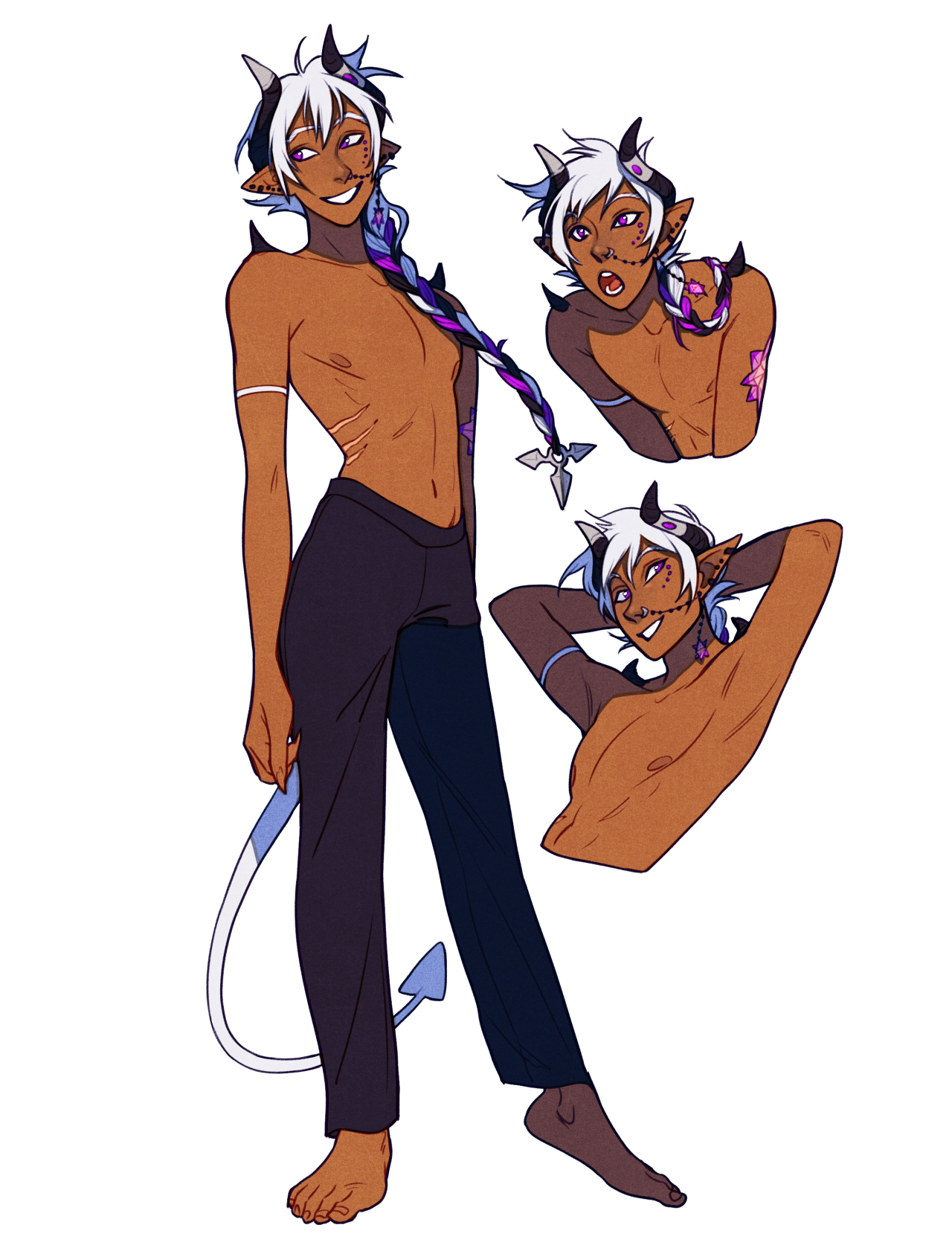 spletené v copu, jež je zakončený jakousi třícípou hvězdou. Je to